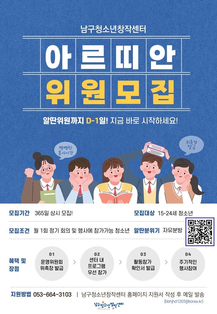 🌟남구청소년창작센터 청소년운영위원회 '아르띠안' 신규위원을 모집합니다🌟