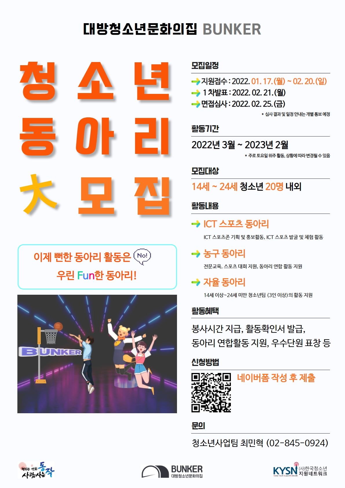 * 문의 : 대방청소년문화의집 청소년사업팀 최민혁 02-845-0924 / bunker0924@naver.com
