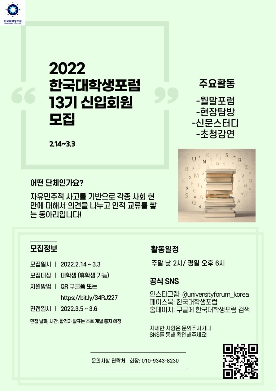 [한국대학생포럼 2022 상반기 신입회원 모집]