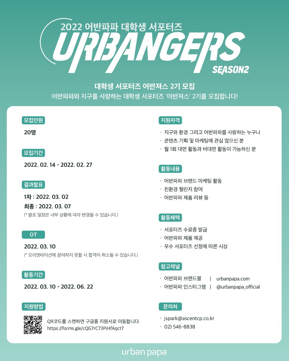 <2022 어반파파 대학생 서포터즈 어반져스 2기 모집>