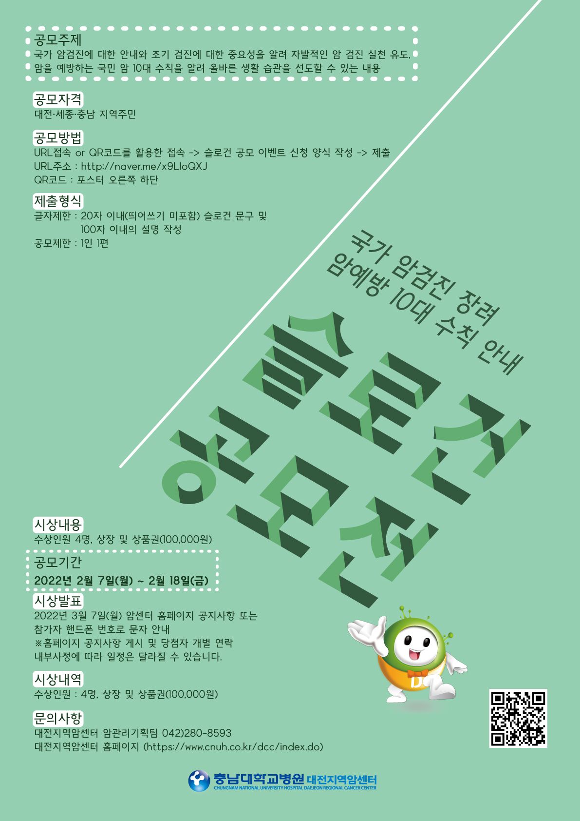 <2022년 대전지역암센터 암예방·암검진 슬로건 공모 이벤트 안내>