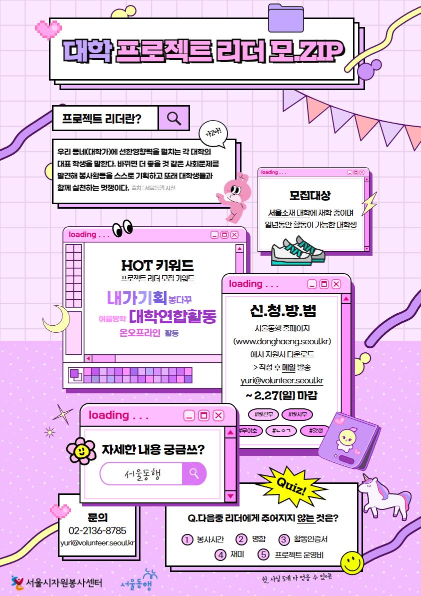 담당자 : 02-2136-8785, yuri@volunteer.seoul.kr