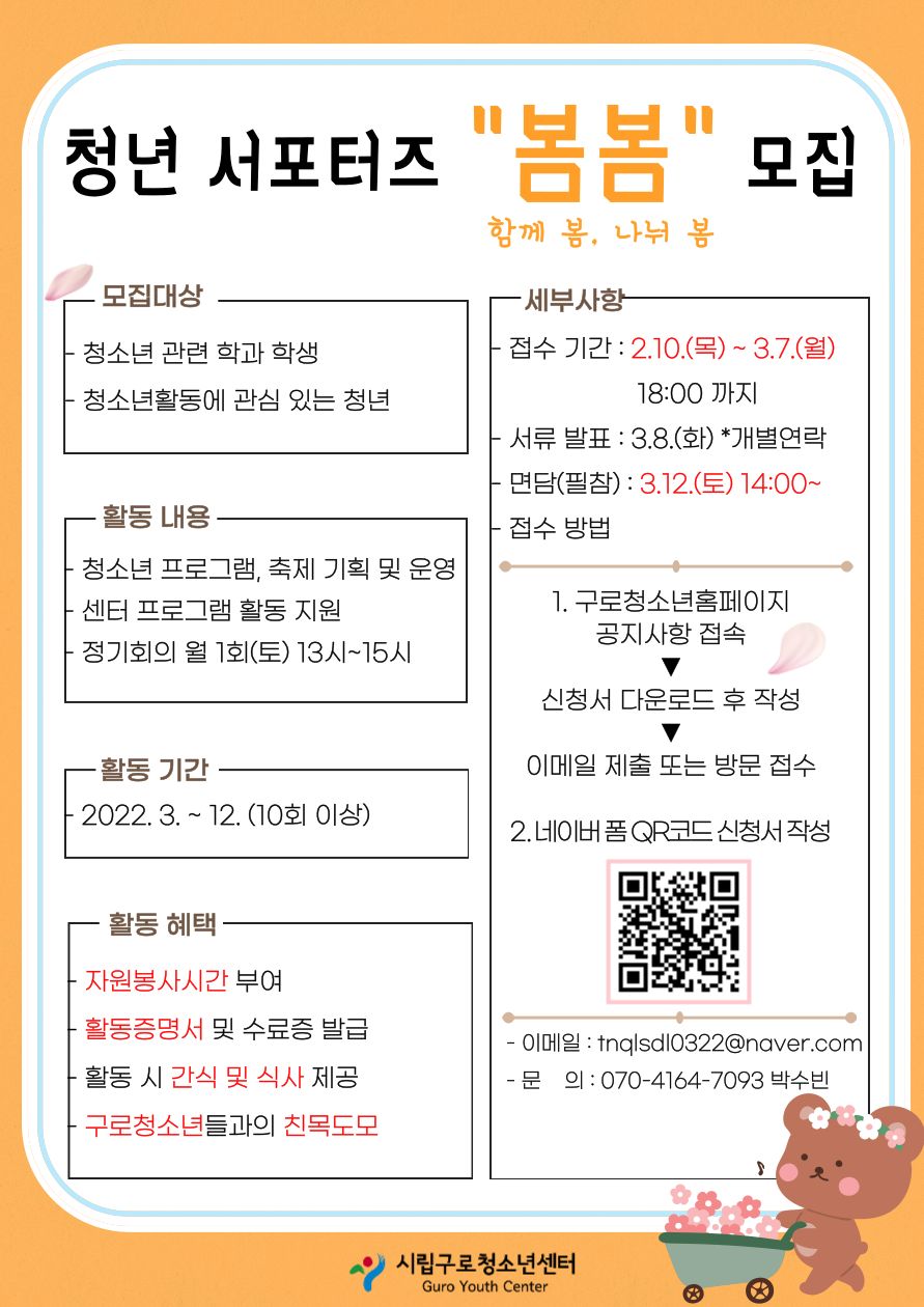 구로청소년센터에서 청년 서포터즈 “봄봄”을 모집합니다!
