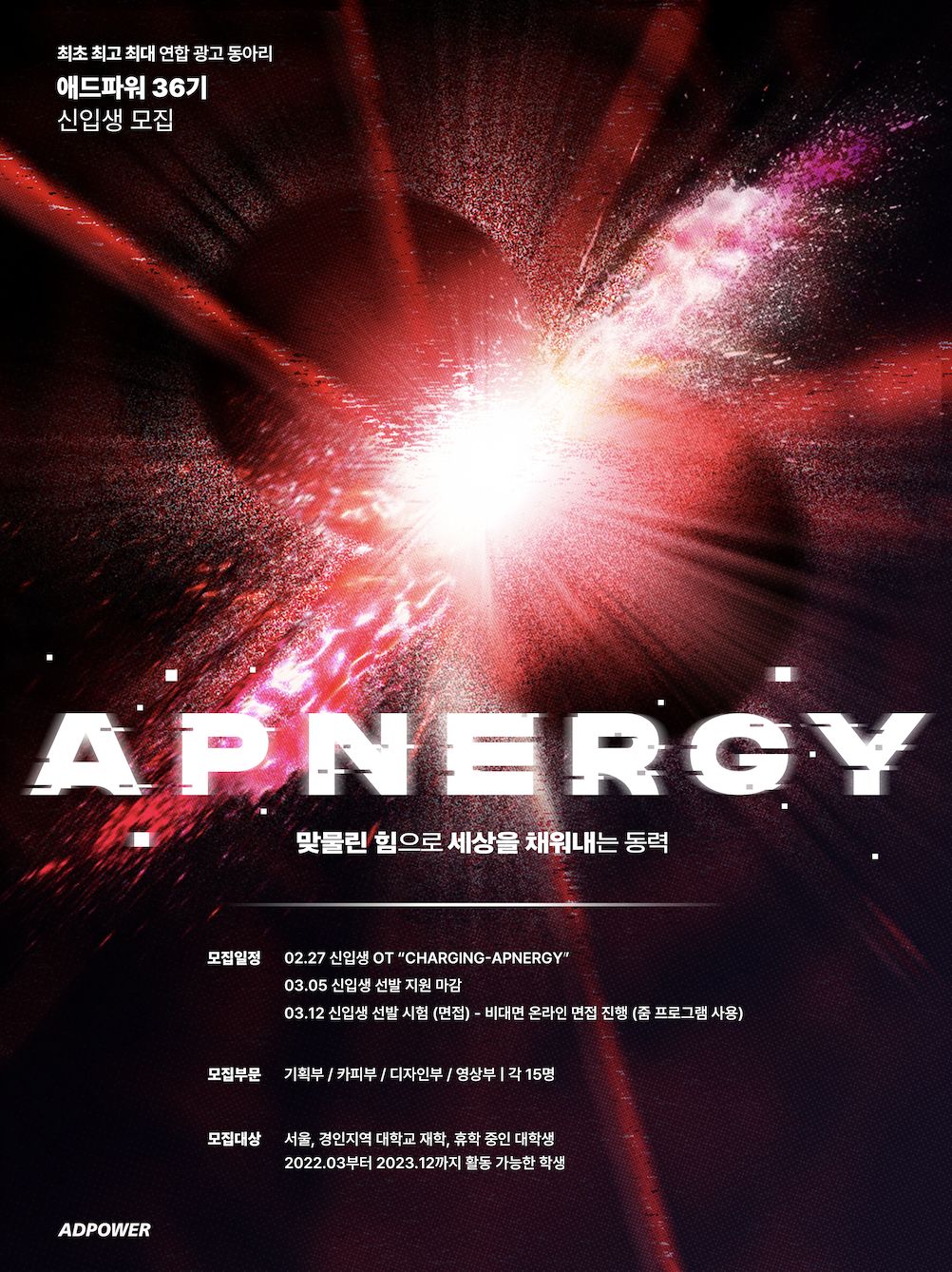 최초•최고•최대의 대학생 광고연합동아리 애드파워에서 36기 신입생을 모집합니다.