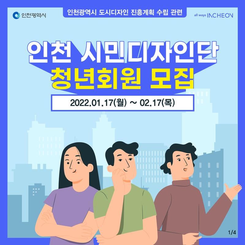 디자인으로 살기 좋은 인천을 만들기 위해 ‘인천 시민디자인단’청년회원을 모집합니다.