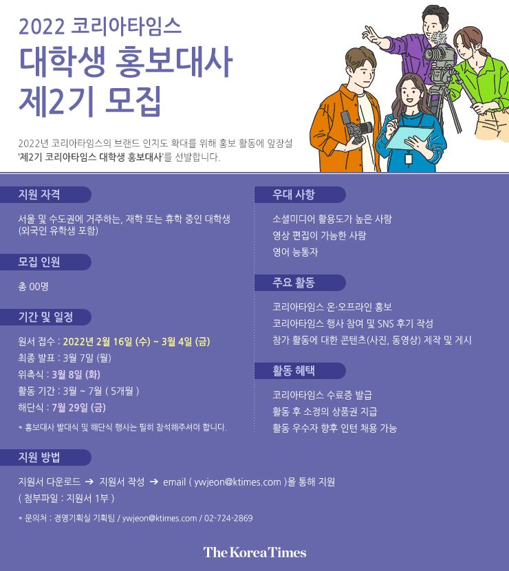 문의 : 코리아타임스 경영기획실 기획팀 | ywjeon@ktimes.com | 02-724-2869