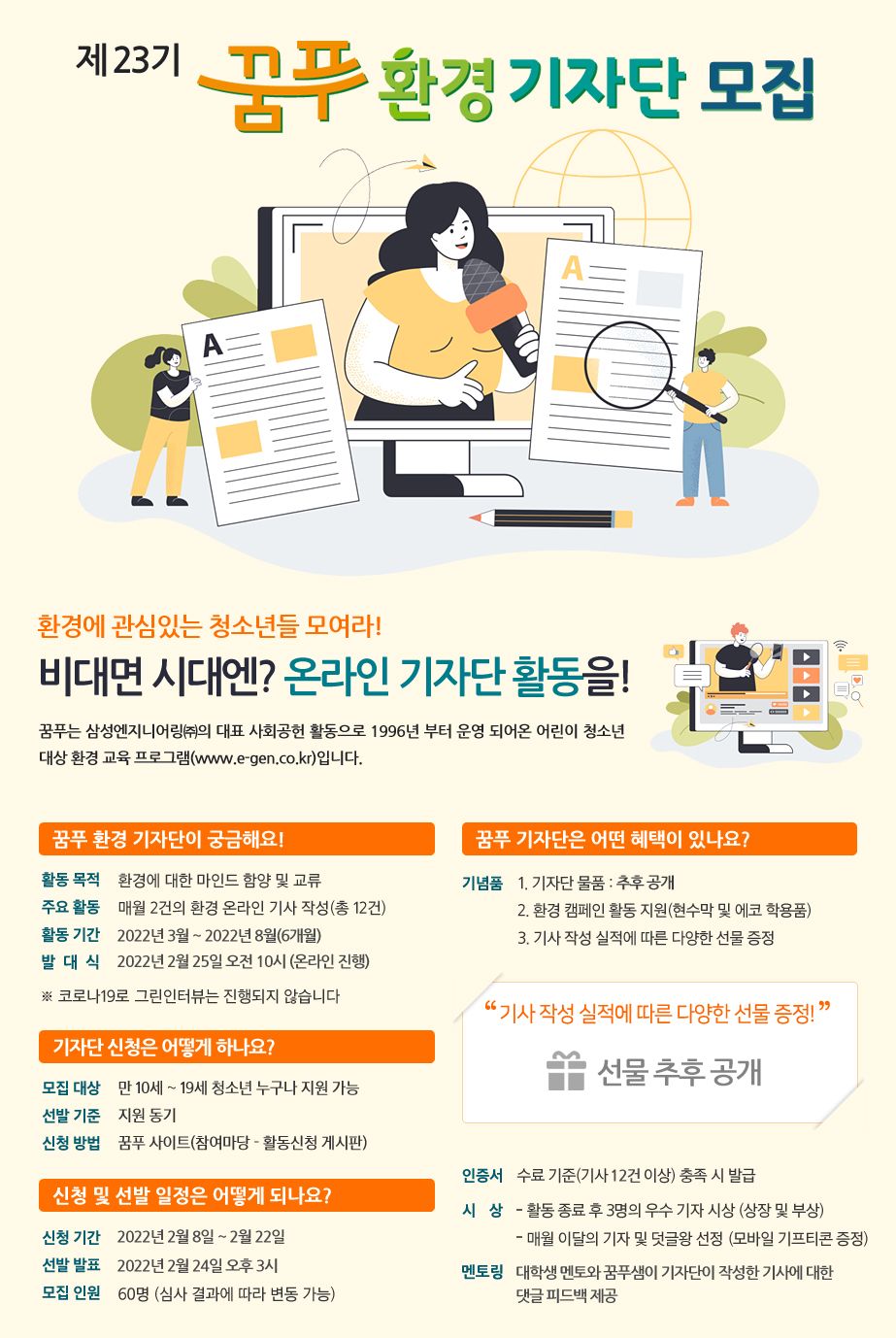 -제목: 삼성엔지니어링 꿈나무 푸른교실 23기 환경기자단 모집