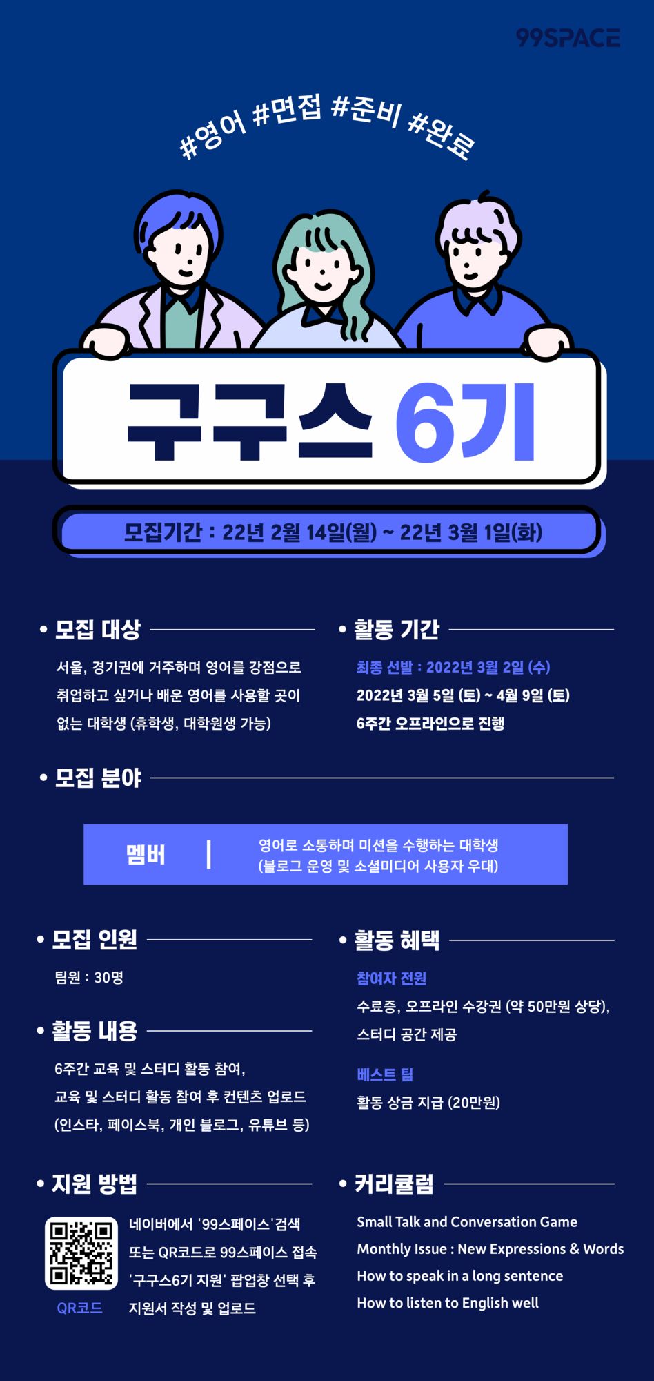 ■ 지원 방법: 99스페이스 홈페이지 내 지원 페이지에서 지원서 작성 및 업로드 (https://99space.kr/supporters/?bmode=view&idx=5925129&back_url=&t=board&page=1)