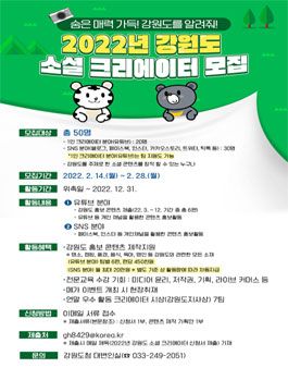 ※ 제출시 메일 제목(2022년 강원도 소셜 크리에이터 신청서 제출) 기재