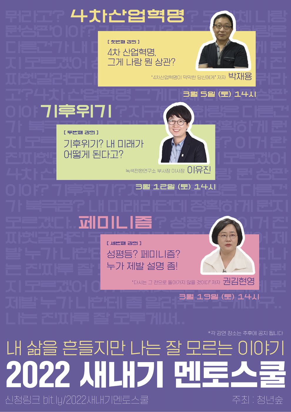 바로바로...!!!! ⭐4차 산업혁명 / 기후위기 / 페미니즘⭐ 세가지 강연입니다🥳✨