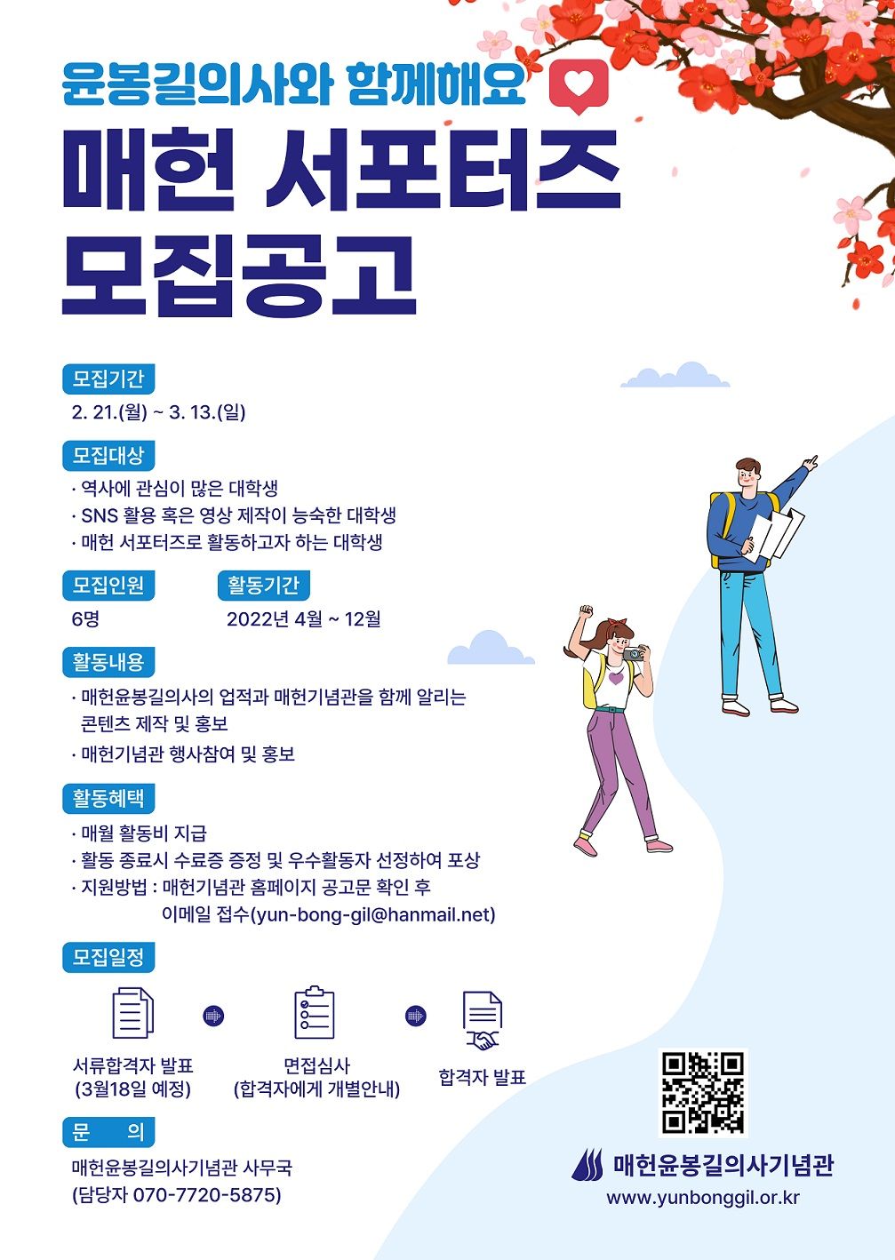대학생 홍보단 <매헌 서포터즈> 모집 공고
