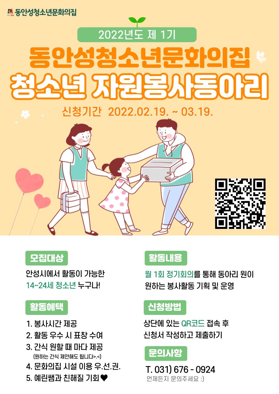 <2022년 동안성청소년문화의집 청소년 자원봉사동아리 1기 모집>
