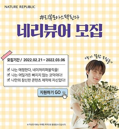 네이처리퍼블릭에서 대학생 온라인리뷰 서포터즈 <네리뷰어>를 모집합니다!