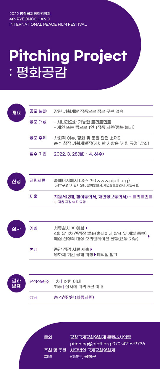 2022 평창국제평화영화제 피칭 프로젝트 공모전
