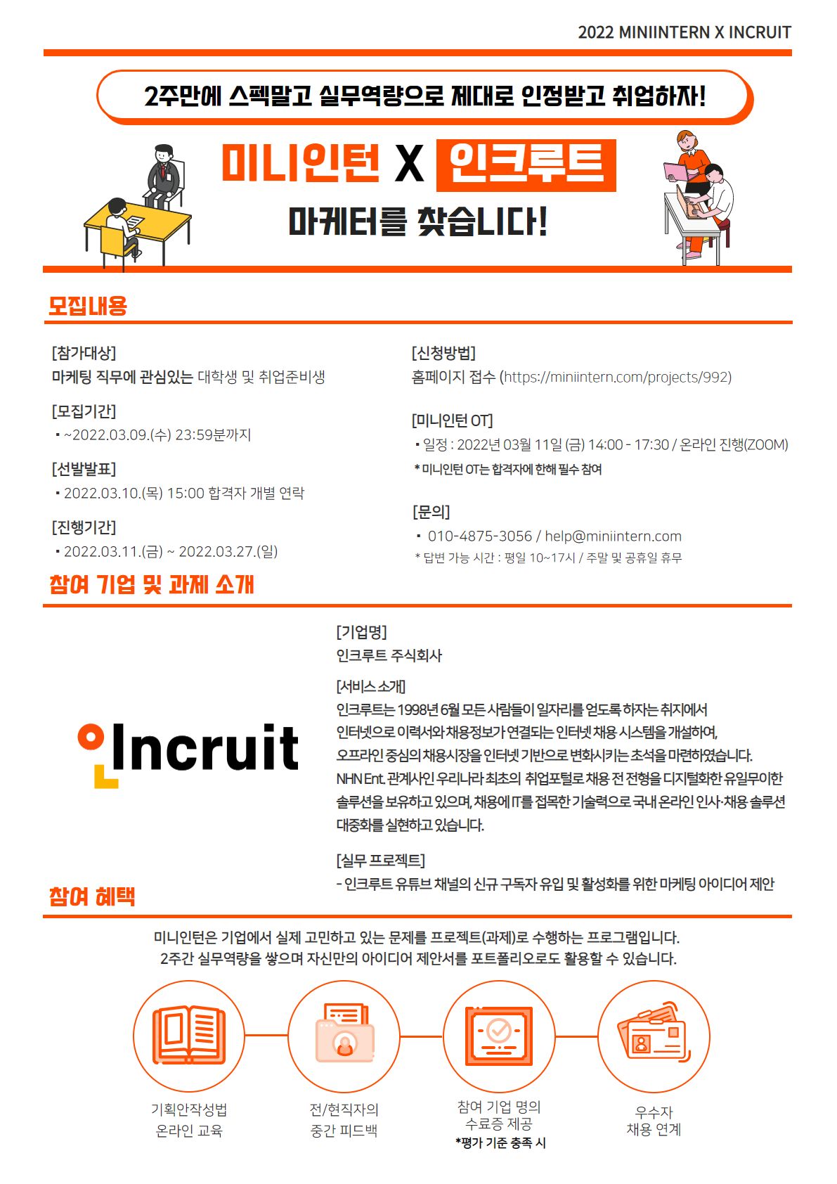- 미니인턴 참가 시 미니인턴 사전 OT 참가는 필수 사항이며,