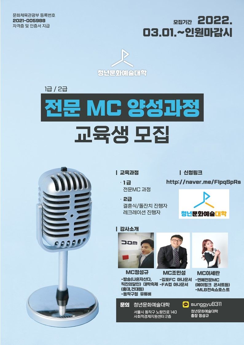 ☆청년문화예술대학 1기★ 전문 MC과정!!!😍