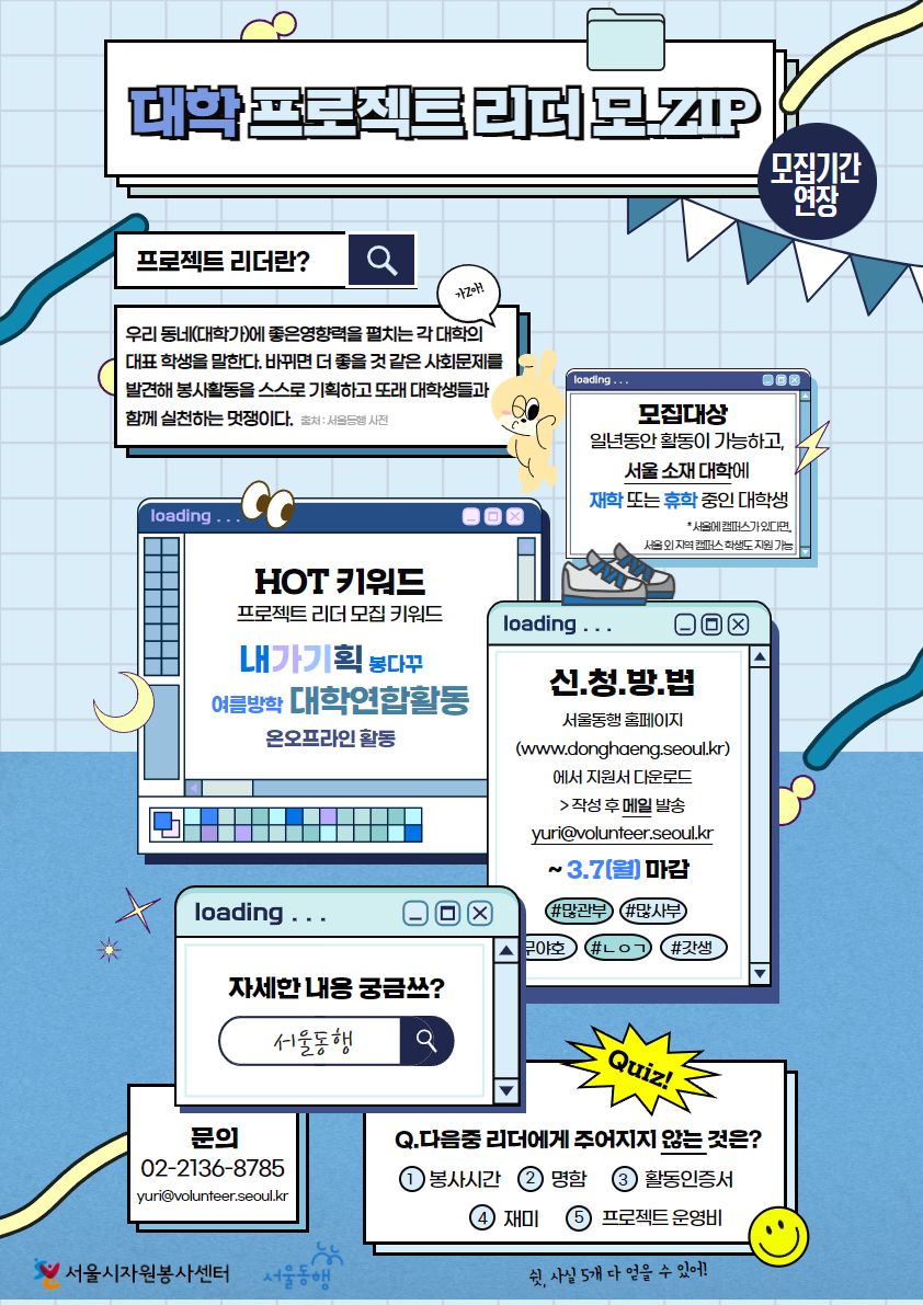 담당자 : 02-2136-8785, yuri@volunteer.seoul.kr