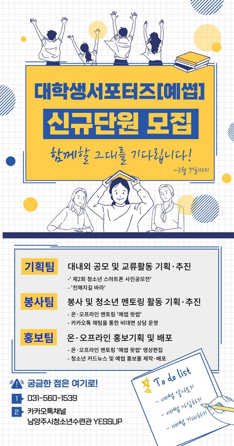 2022년 남양주시청소년수련관 4기 대학생 서포터즈 예썹(YESSUP) 모집