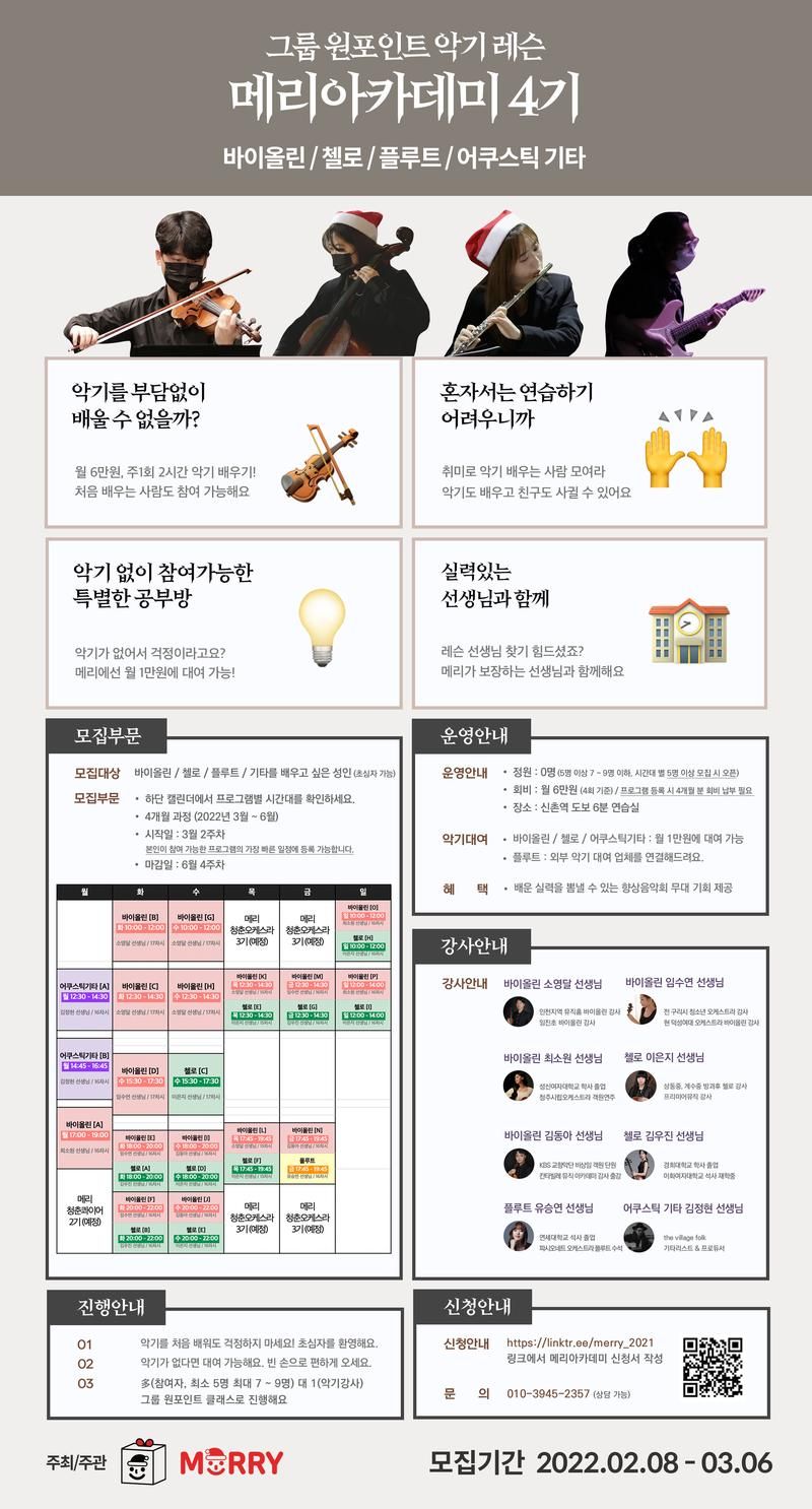📌모집대상 : 바이올린/첼로/플루트/어쿠스틱 기타를 배우고 싶은 성인 누구나 (초심자 환영 & 악기 대여 가능)