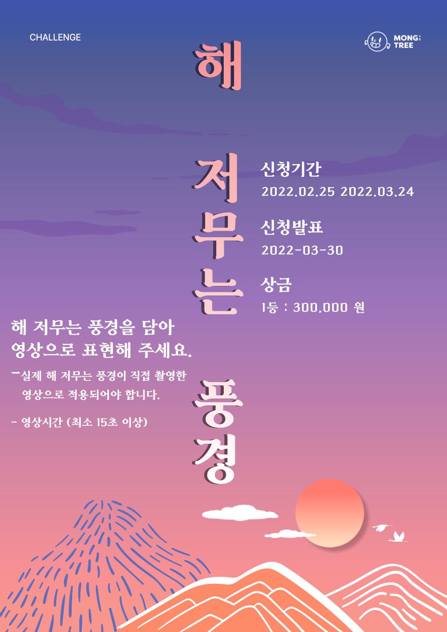 - 게재되지 않은 영상물이어야 하며, 저작권은 응모자에게 있으며, 몽트리의 홍보사업 및 각종 홍보등에 활용됩니다.