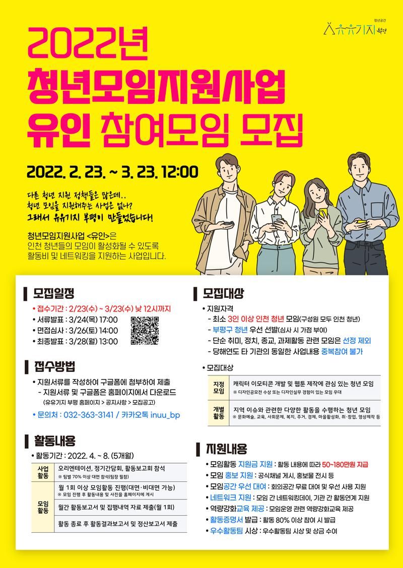 - 접수방법 : 유유기지 부평 홈페이지 모집공고 확인 후 구글폼 접수