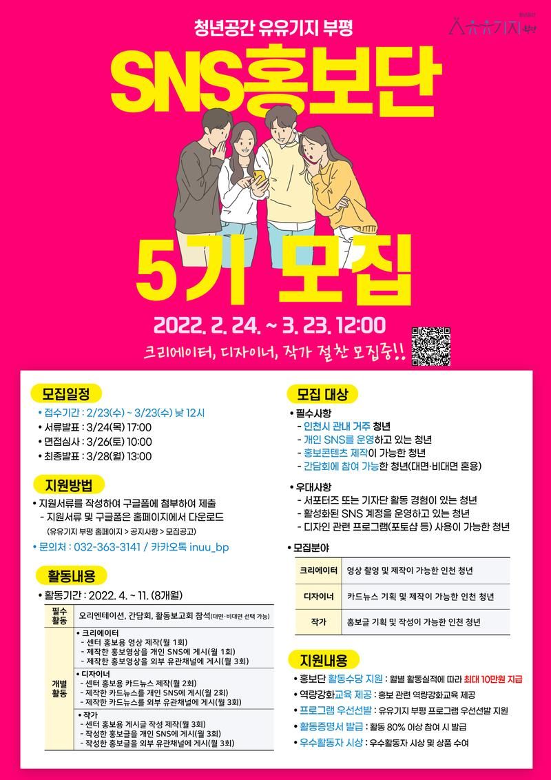 - 접수방법 : 유유기지 부평 홈페이지 모집공고 확인 후 구글폼 접수