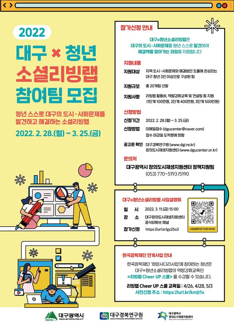 <2022 대구×청년소셜리빙랩> 참여팀을 공모중에 있습니다.