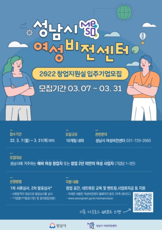 2022년 성남시 여성비전센터 창업지원실 입주기업 모집 공고