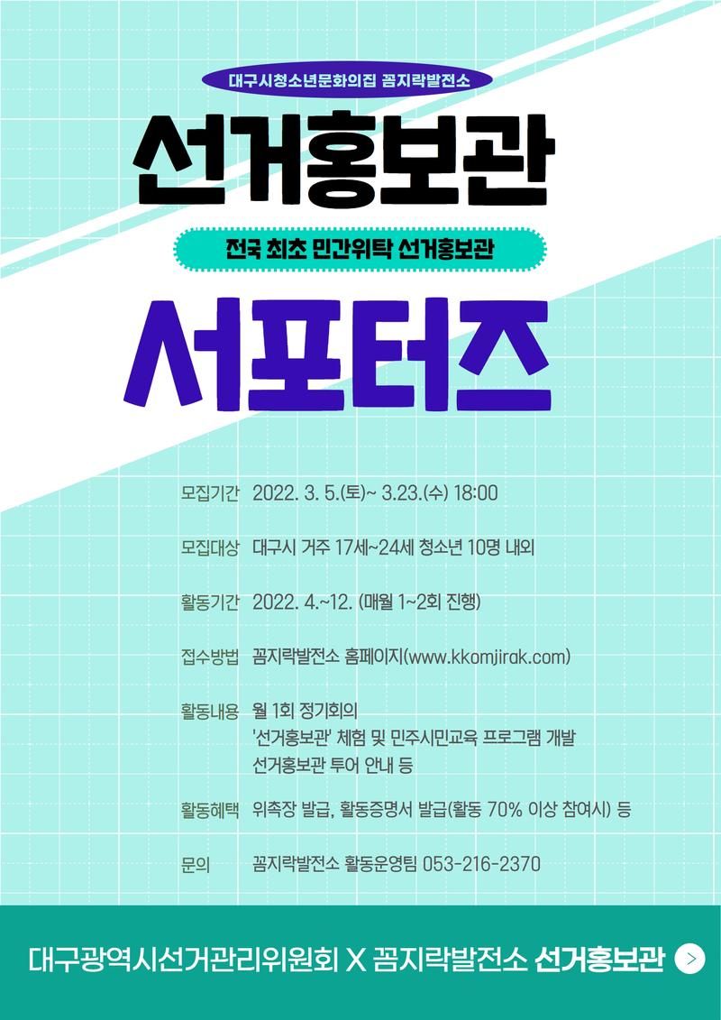 대구광역시선거관리위원회X꼼지락발전소 '선거홍보관'은 전국 최초 민간 위탁 선거홍보관입니다.