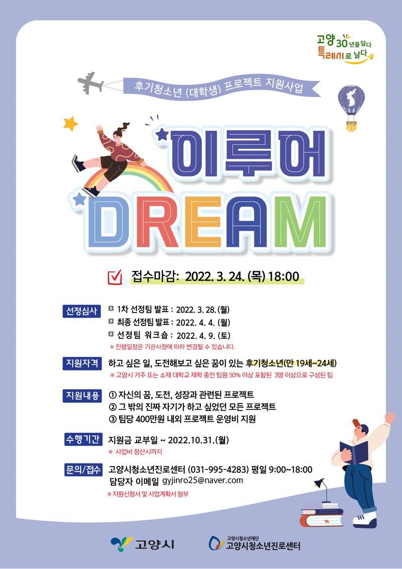 고양시청소년진로센터에서 2022년 이루어Dream 프로젝트 팀을 모집합니다!