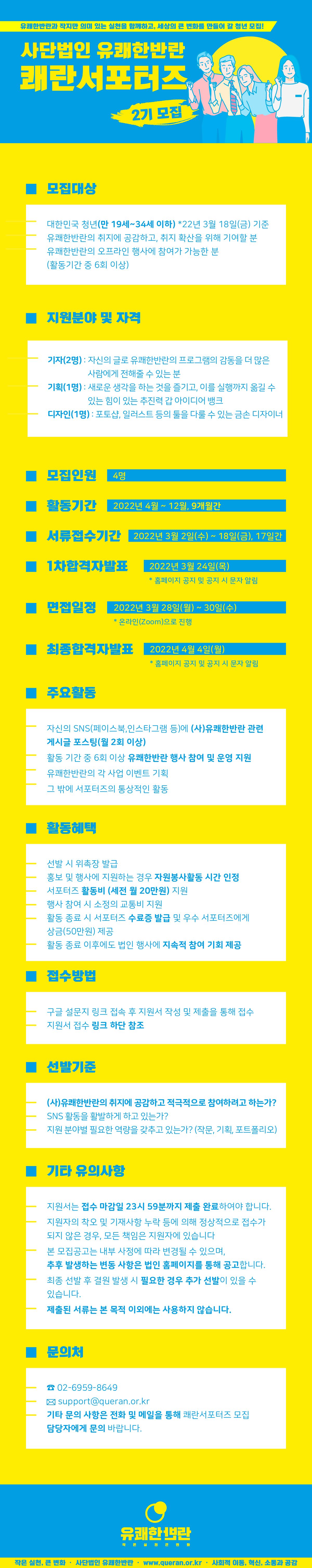 - 사단법인 유쾌한반란에서 쾌란서포터즈 2기를 모집합니다.
