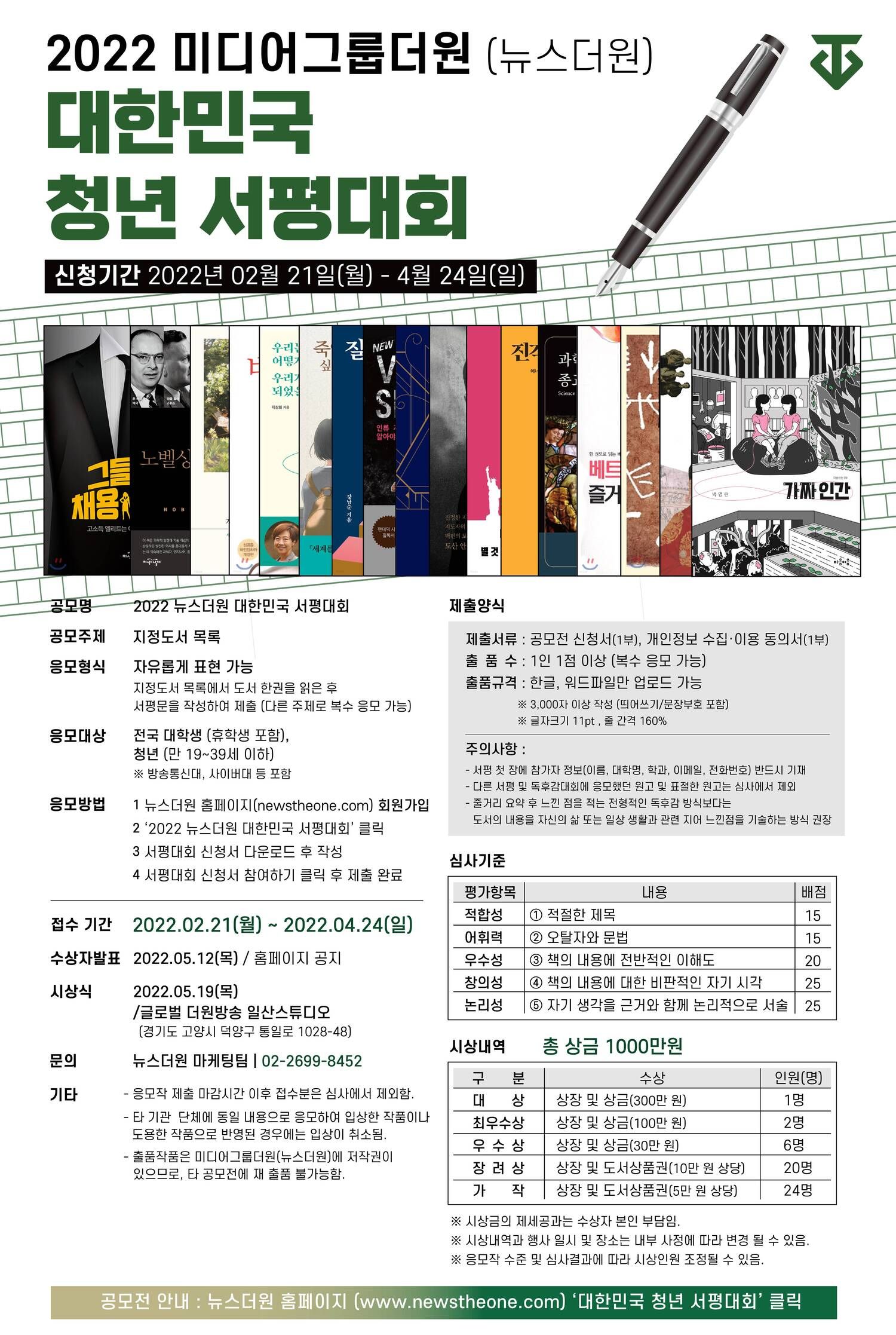 공모명 : 2022 뉴스더원 대한민국 청년 서평대회