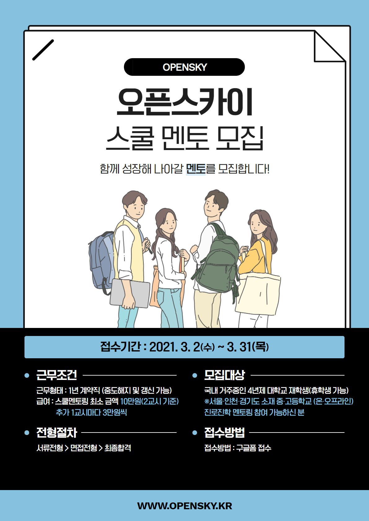 오픈스카이에서 대학생 스쿨멘토를 모십니다😀