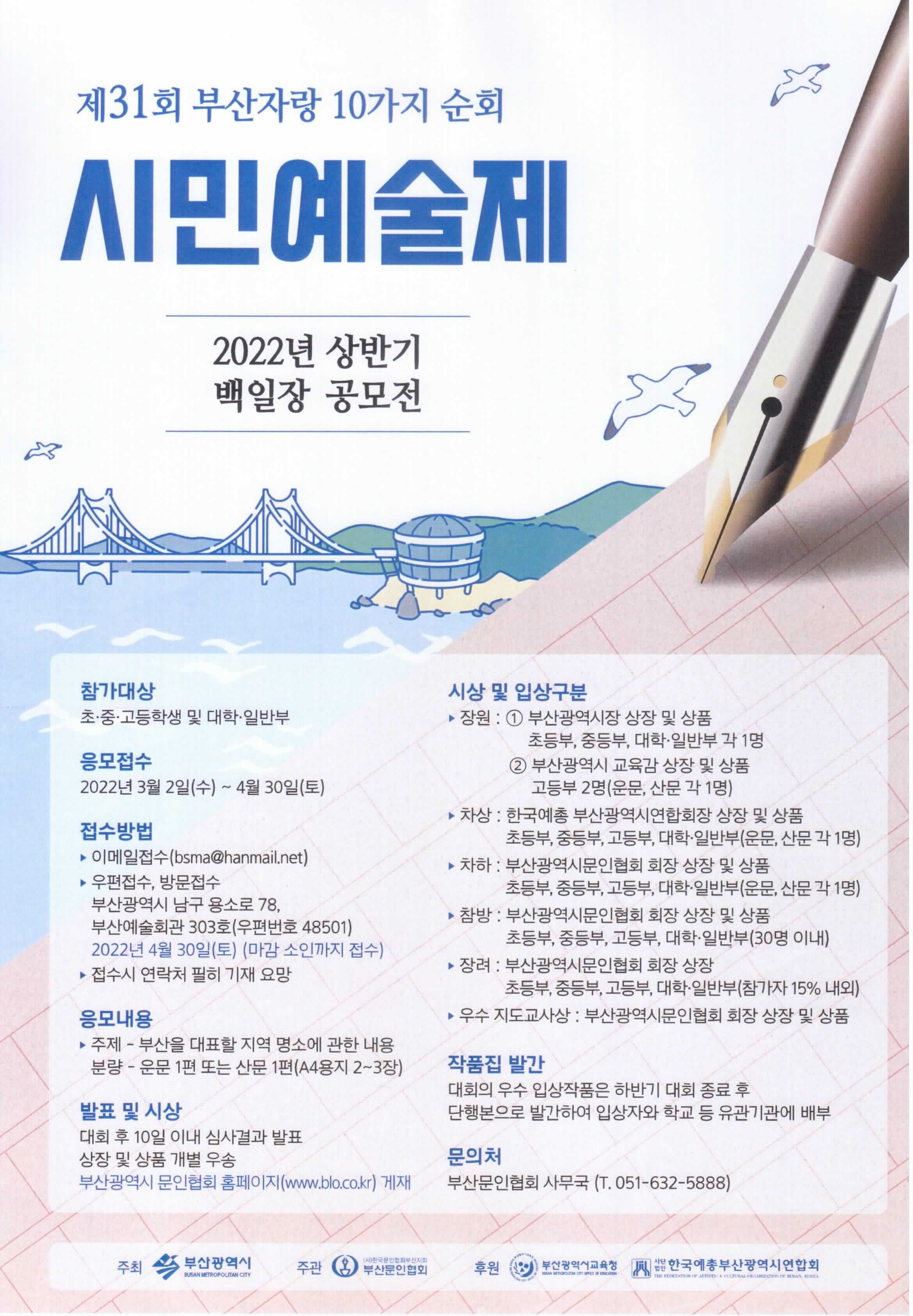 2022 제31회 부산자랑 10가지 순회 시민예술제 상반기 백일장 공모전