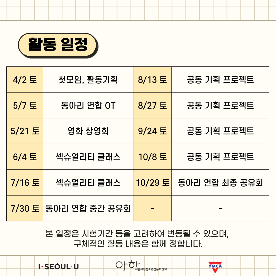 - 활동기간: 2022년 4월 ~ 10월 (토요일 2시, 월1~2회)