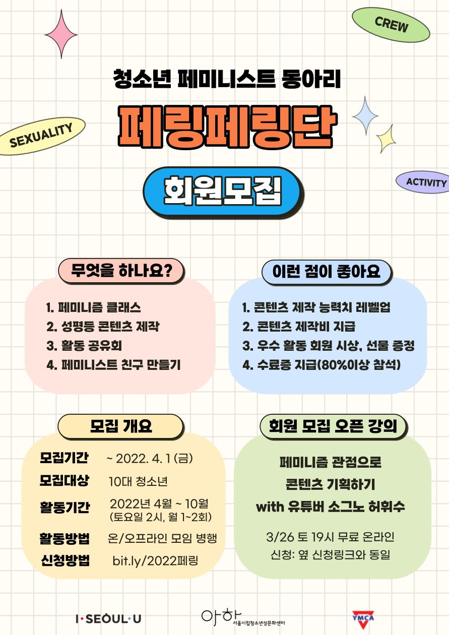 [청소년 페미니스트 동아리 '페링페링단' 회원 모집]
