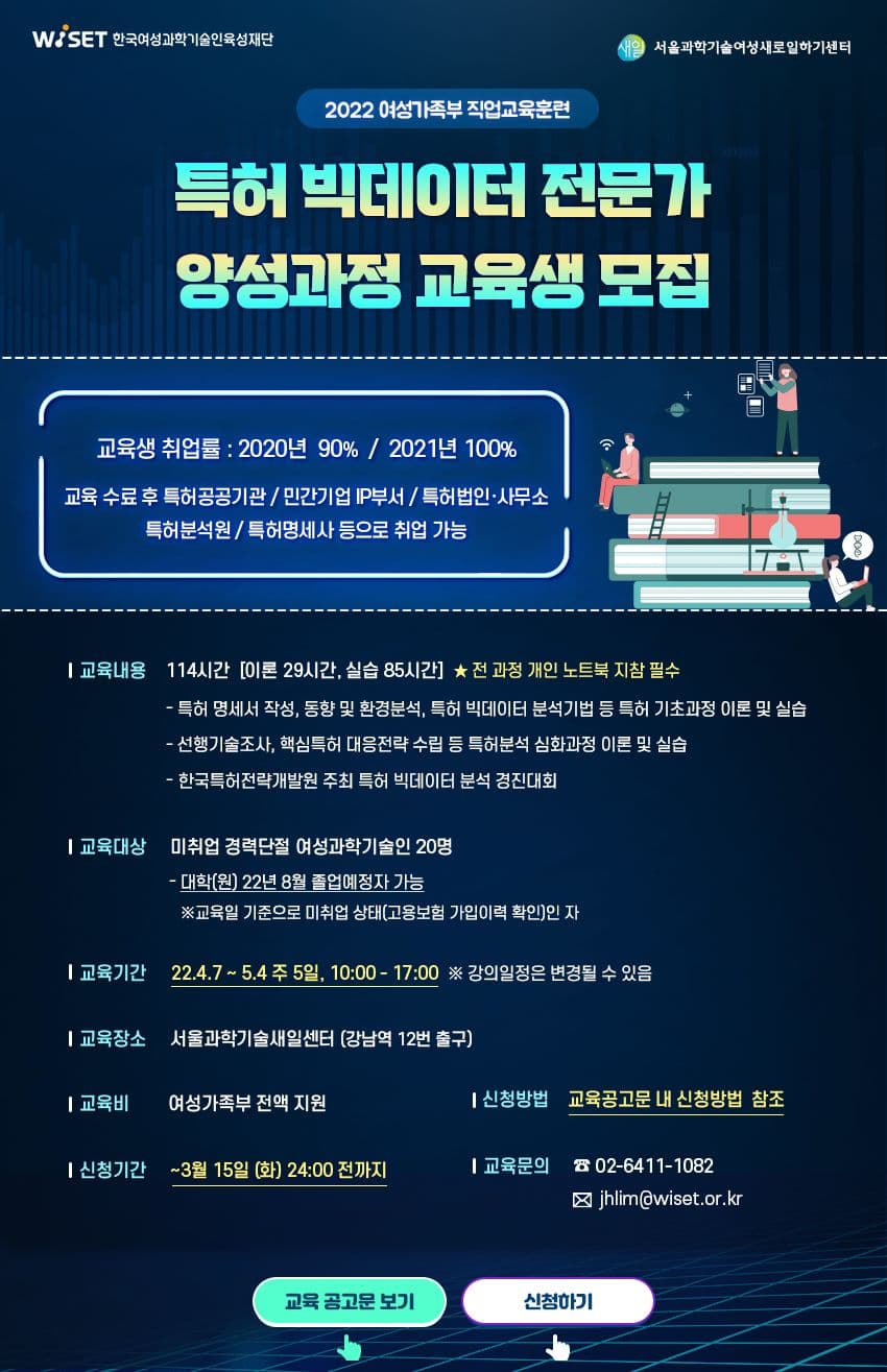 문의: WISET 서울과학기술새일센터 02-6411-1082, jhlim@wiset.or.kr