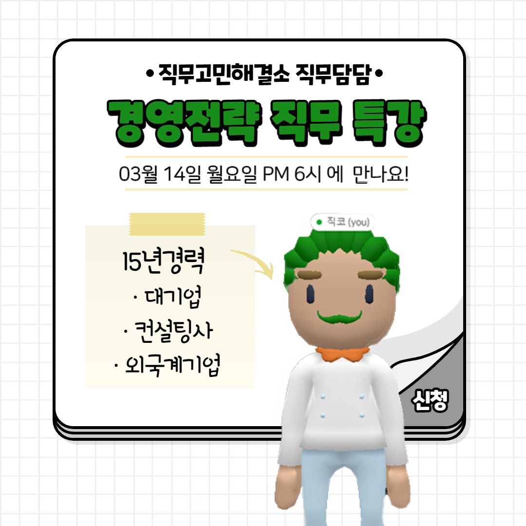 경영전략 직무미식회 일시 : 03-14 (월) 18:00-19:00 (1시간)