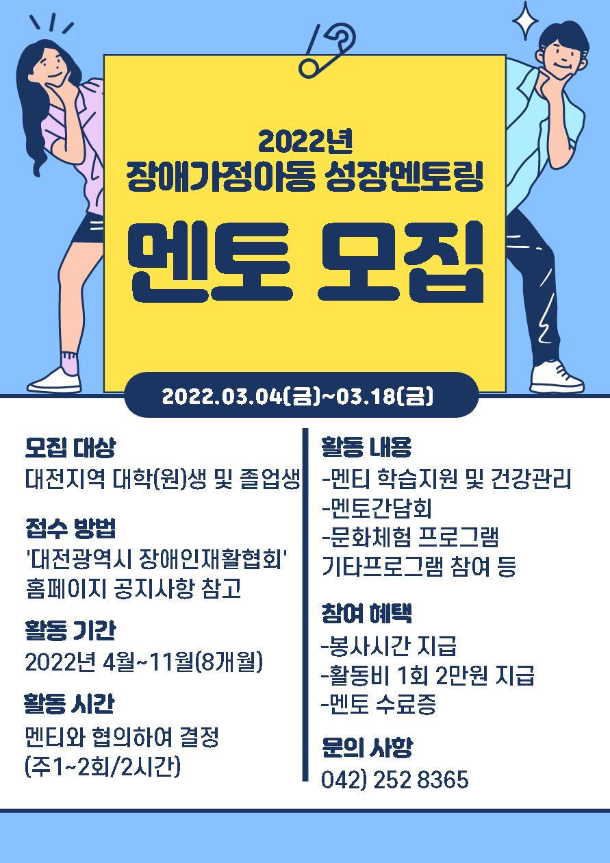 2022년 장애가정아동성장멘토링 멘토 모집!