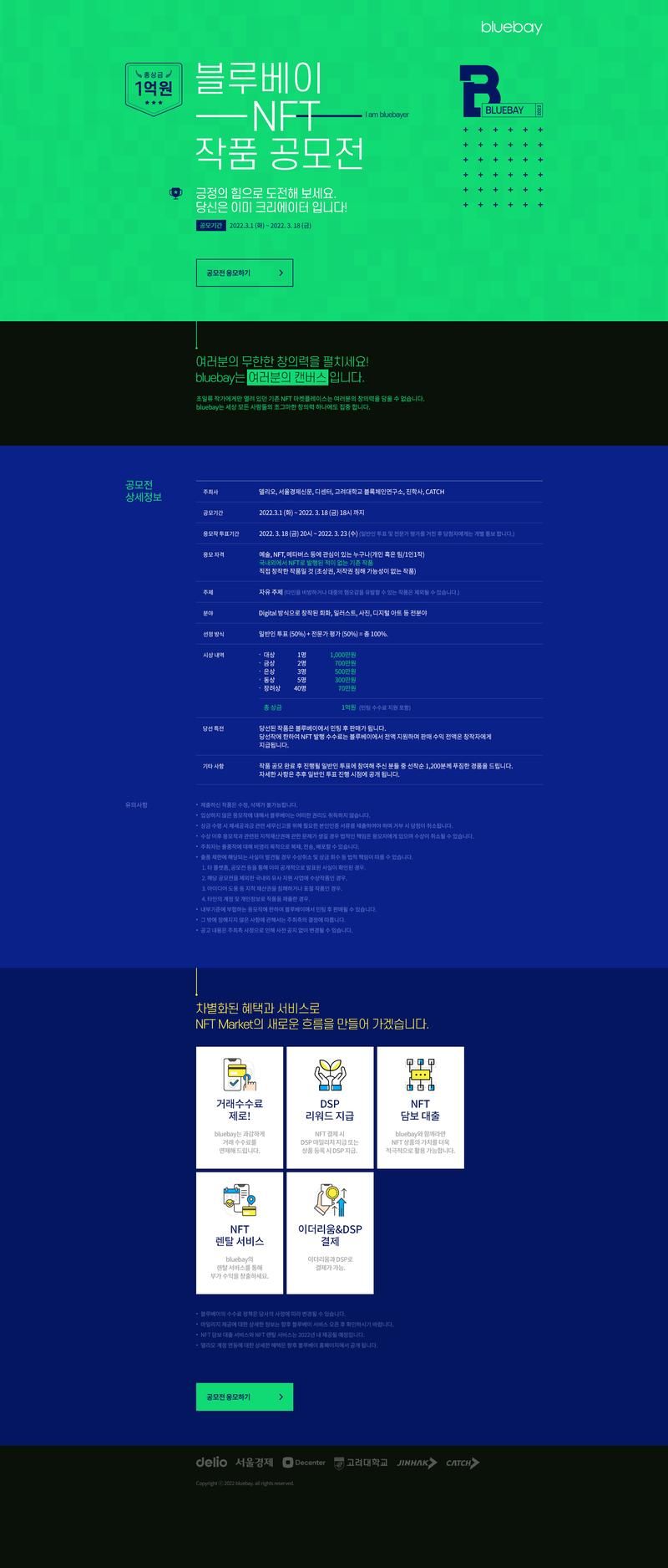 델리오 공식 홈페이지 상단의 '블루베이 NFT 공모전'을 통해 응모 가능
