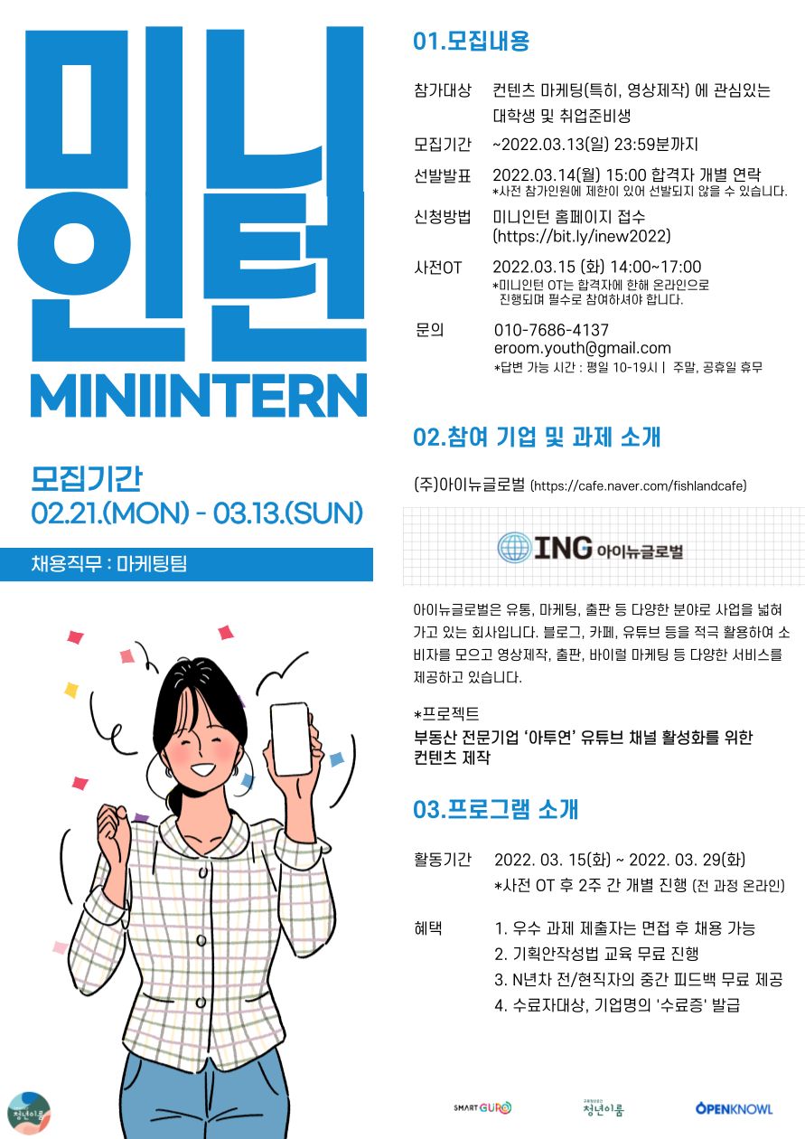 [미니인턴X아이뉴글로벌] 실무 쌓고 취업할 사람 주목! 아이뉴글로벌의 컨텐츠마케터를 모집합니다. (~03/13)