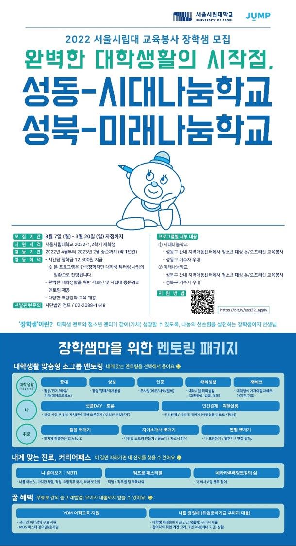 「2022 시립대 시대나눔학교 & 미래나눔학교 교육봉사 장학샘 모집」