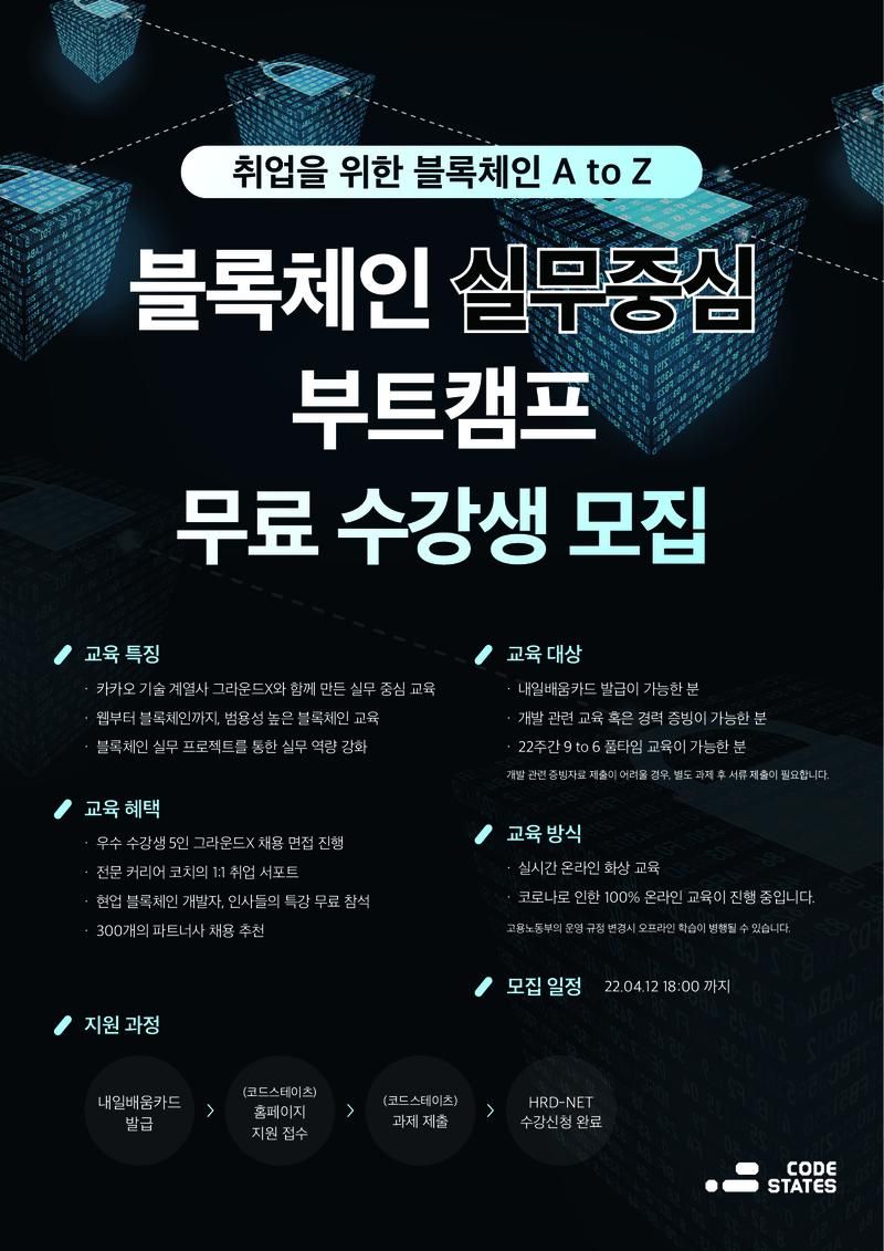 블록체인의 전문가로 취업할 수 있도록 22주간 전력질주하게 됩니다.