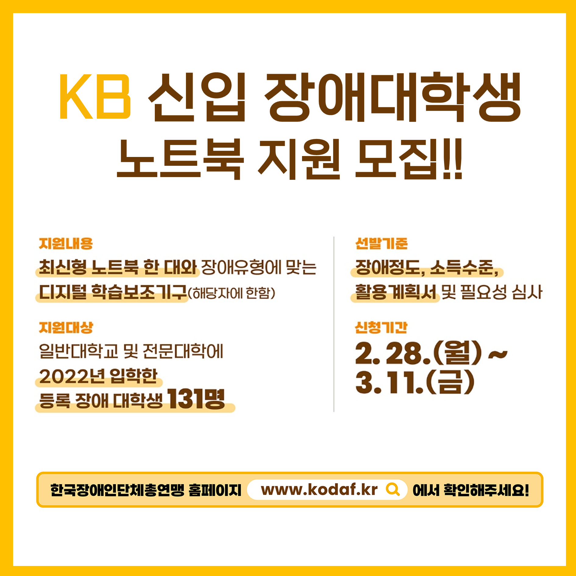 ▶KB 신입 장애대학생 노트북 지원사업은?