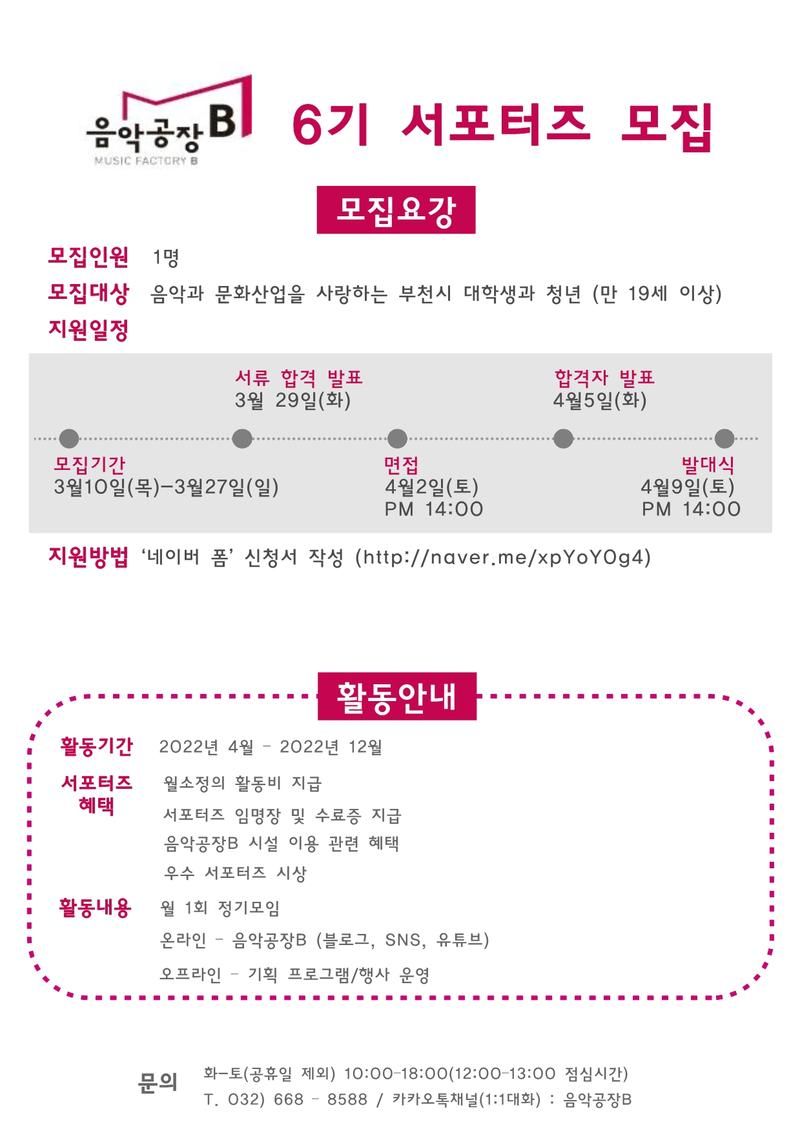 전화 : ☏ 032-668-8588 / 카카오톡채널(1:1대화) : 음악공장B