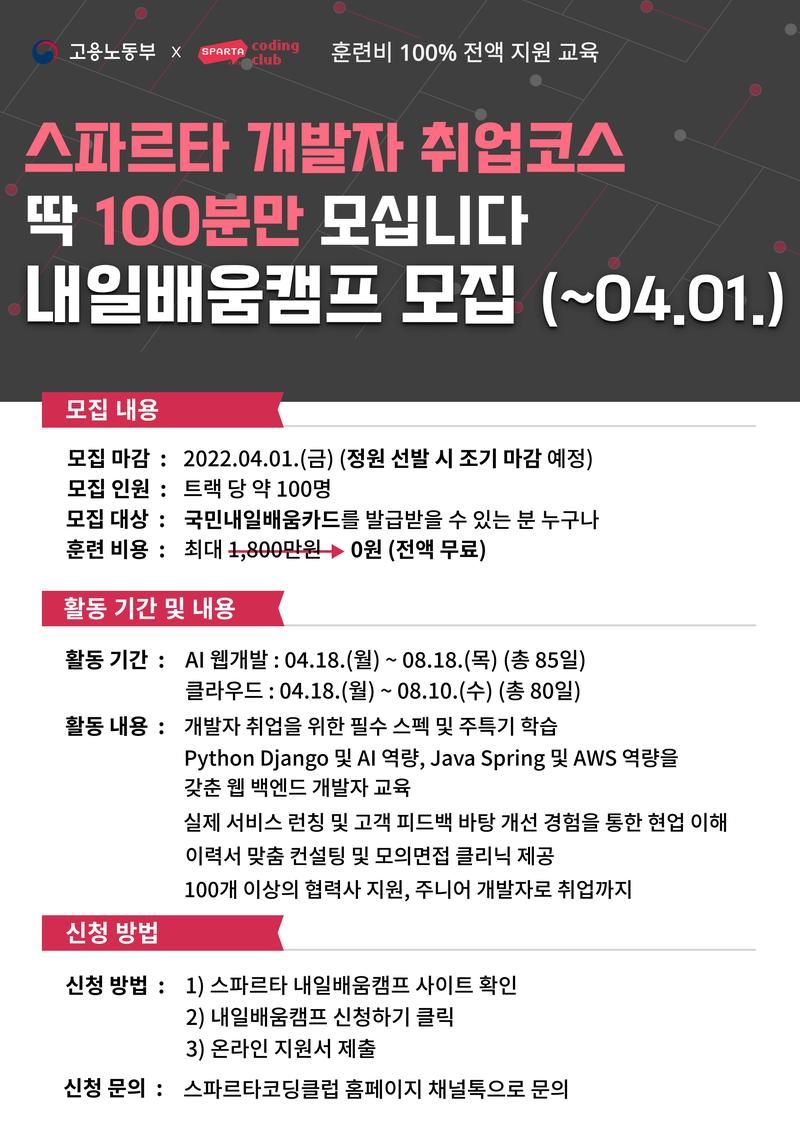 - 100개 이상의 스파르타 협력사에 지원하고, 주니어 개발자로 생활을 시작합니다!