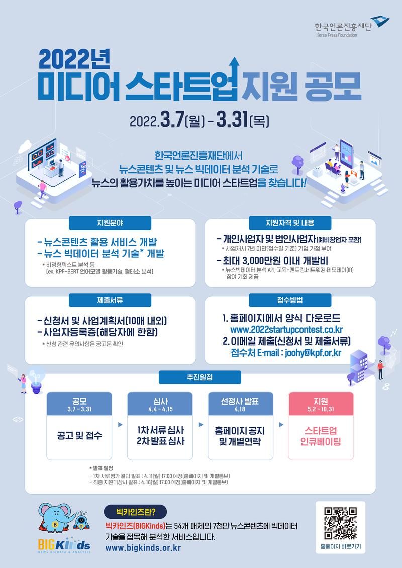 별 첨 1. 2022년 미디어 스타트업 지원 사업 공모 공고문