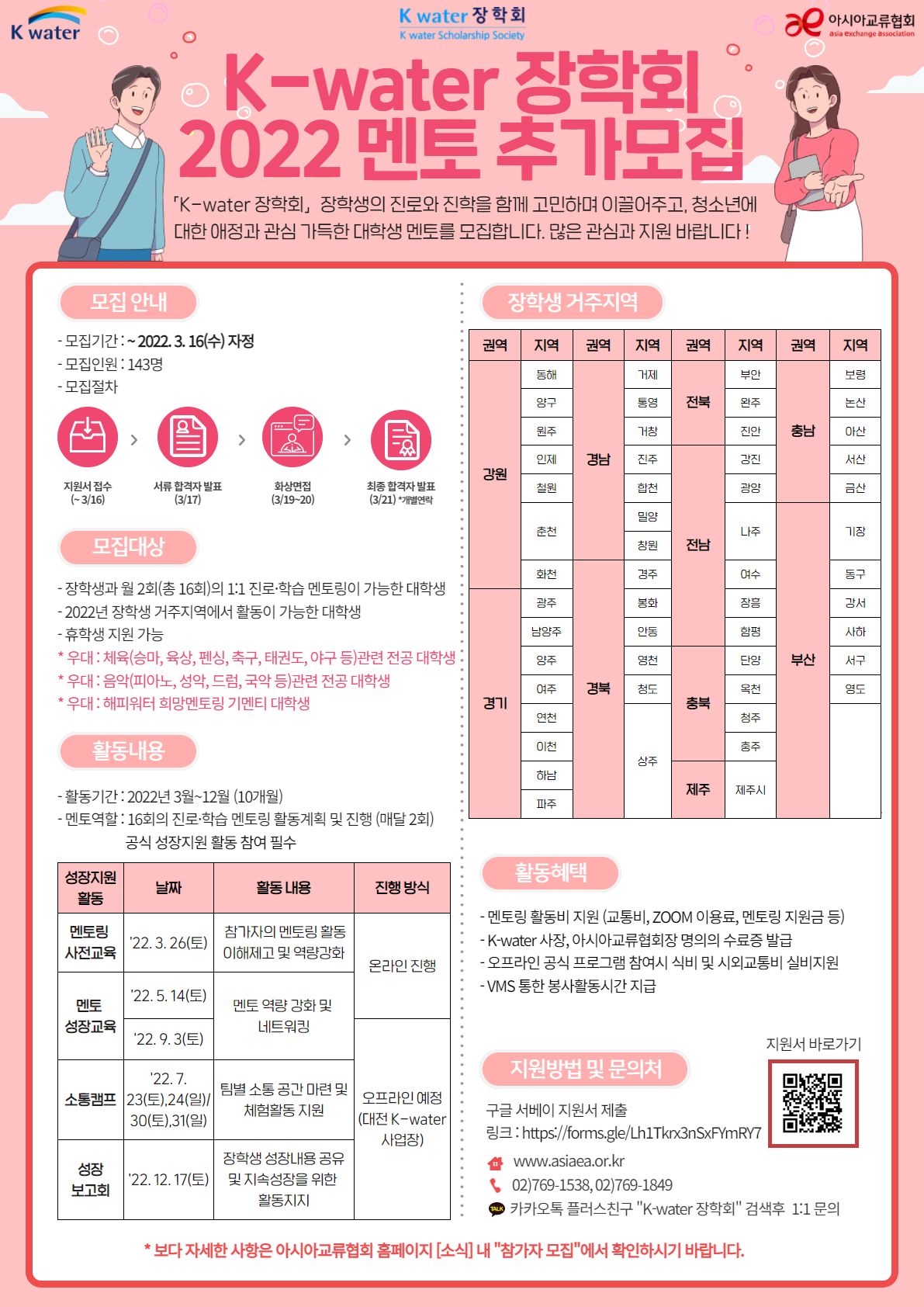 [아시아교류협회] K-water 장학회 2022 멘토 추가모집(~3/16)