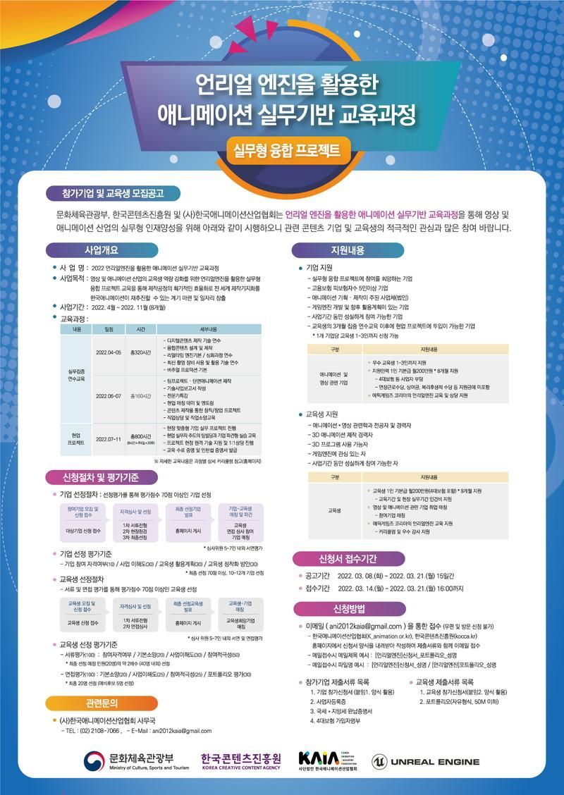 언리얼 엔진을 활용한 애니메이션 실무기반 교육과정 참가기업 및 교육생 모집공고