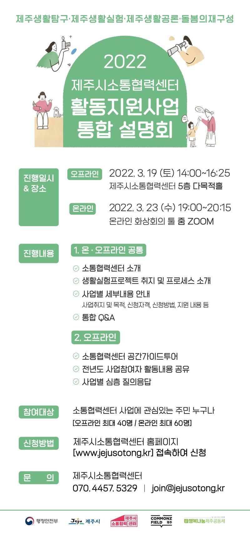 - 문 의 : 제주시소통협력센터 기획협력팀(070.4457.5329 / join@jejusotong.kr)